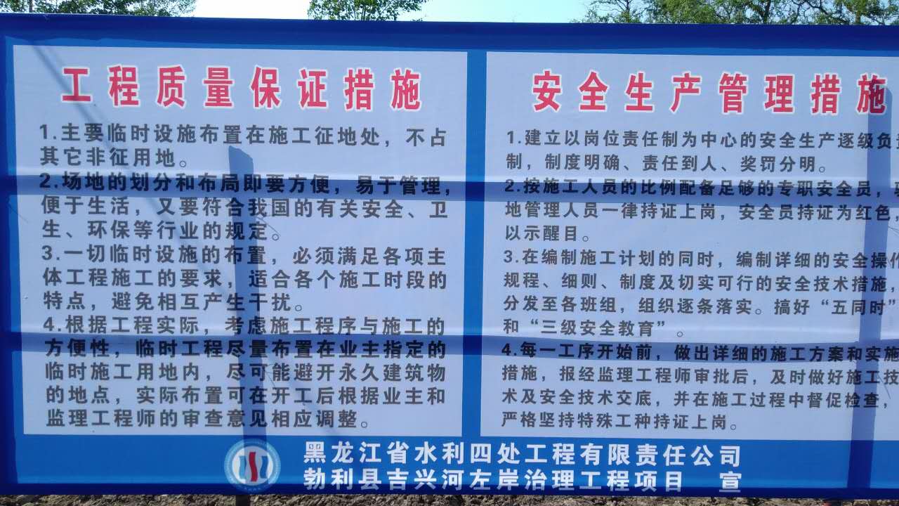 曹秀成經(jīng)理表示,感謝省水利廳、勃利縣水利局領(lǐng)導(dǎo)的關(guān)心與支持,在公司的領(lǐng)導(dǎo)下,有信心和決心優(yōu)質(zhì)高效、安全文明施工,圓滿地完成勃利縣吉興河左岸工程施工任務(wù)。