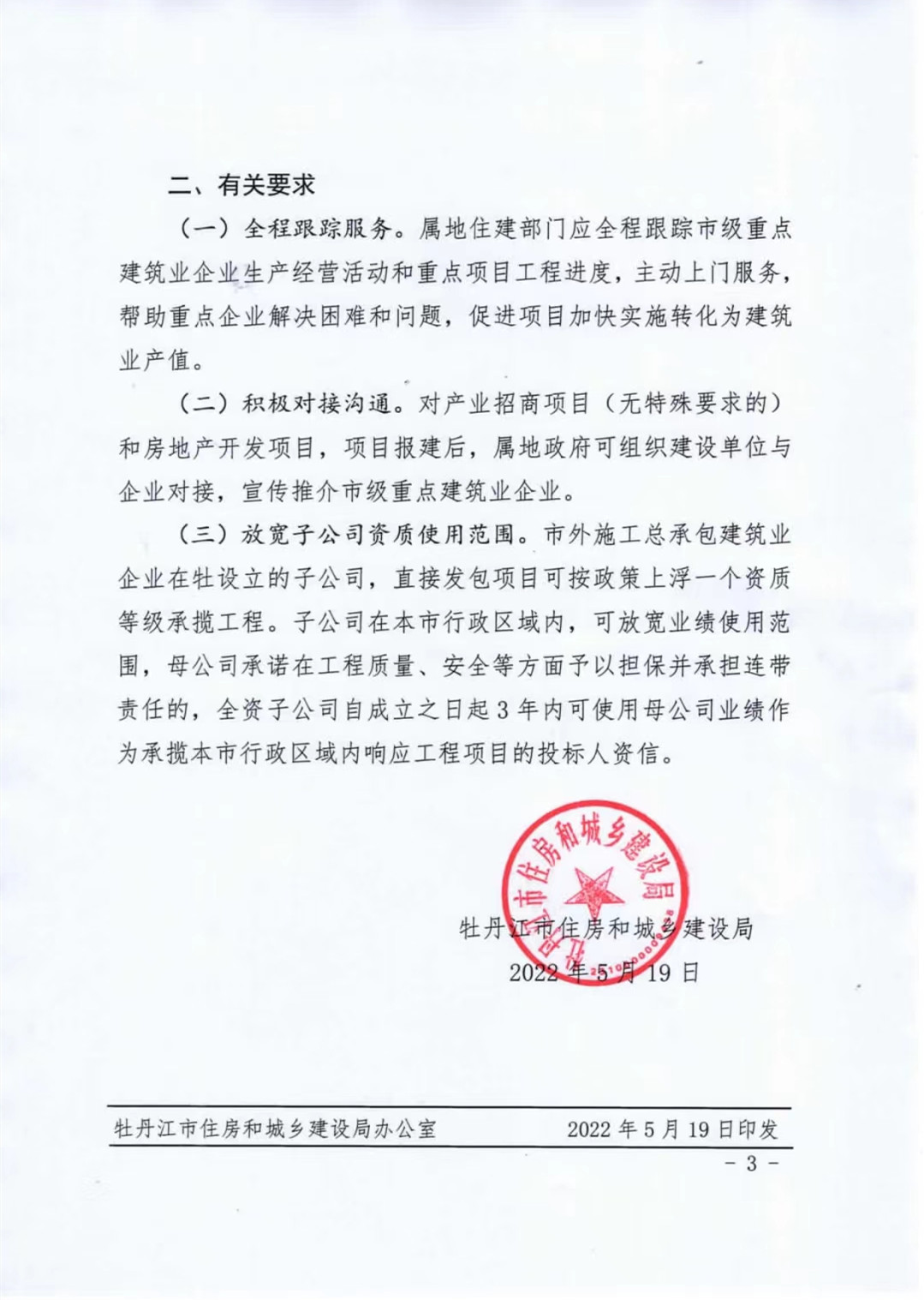 近日,牡丹江市住房和城鄉(xiāng)建設(shè)局下發(fā)文件牡建政發(fā)【2022】27號《關(guān)于印發(fā)牡丹江市重點(diǎn)建筑企業(yè)名單(第一批)的通知》,我公司霍然躋身全市施工總承包重點(diǎn)企業(yè)行列,名居前二甲。