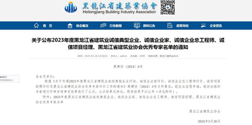 經(jīng)省有關(guān)部門(mén)綜合評(píng)估,日前我公司榮獲“2023年度黑龍江省建筑業(yè)誠(chéng)信典型企業(yè)”殊榮。同時(shí)我公司楊凱、申維峰、王占福三位同志分別榮獲“2023年度黑龍江省建筑業(yè)誠(chéng)信項(xiàng)目經(jīng)理”榮譽(yù)稱(chēng)號(hào)。