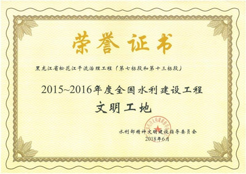經(jīng)過建設(shè)者們實干創(chuàng)新,不懈地努力,先后榮獲了“全國水利建設(shè)工程文明工地”、“愛心企業(yè)”、“抗洪搶險先進企業(yè)“等榮譽稱號。