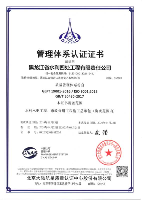 經(jīng)過有關(guān)部門審核,2020年4月22日,我公司再次通過“質(zhì)量管理、職業(yè)健康管理、環(huán)境管理”三大“管理體系認(rèn)證,目前,”三大”管理體系證書業(yè)已發(fā)放到我公司。