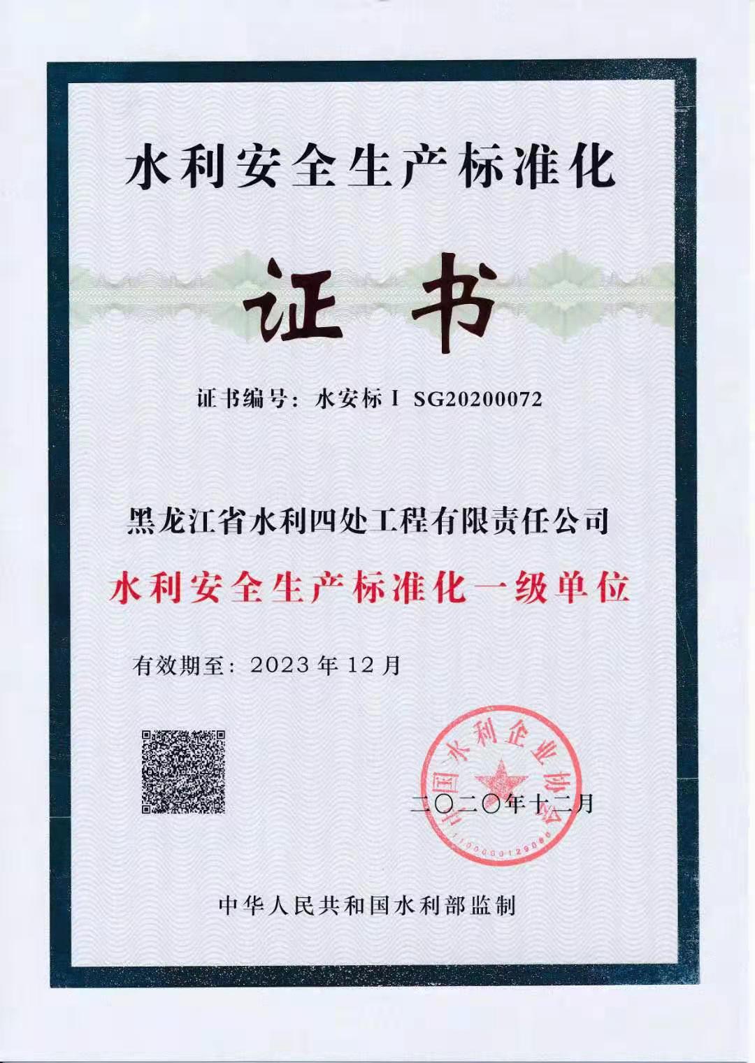 全國水利安全生產(chǎn)標(biāo)準(zhǔn)化一級(jí)單位