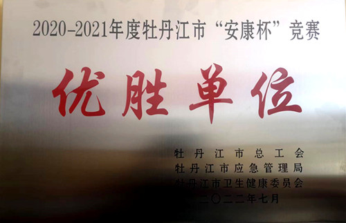 2022年7月8日,我公司榮獲牡丹江市2020-2021年度安康杯競賽“優(yōu)勝單位”榮譽(yù)稱號,標(biāo)志著我公司安全工作取得可喜成效。