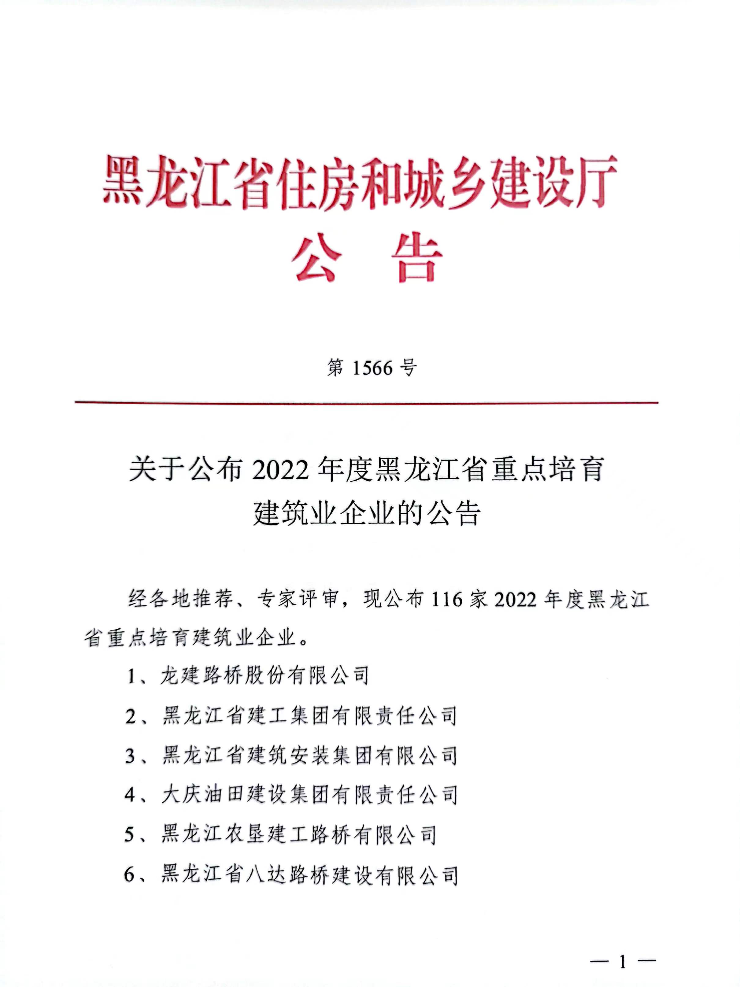 我公司再次獲獲評黑龍江重點培育建筑業(yè)企業(yè)