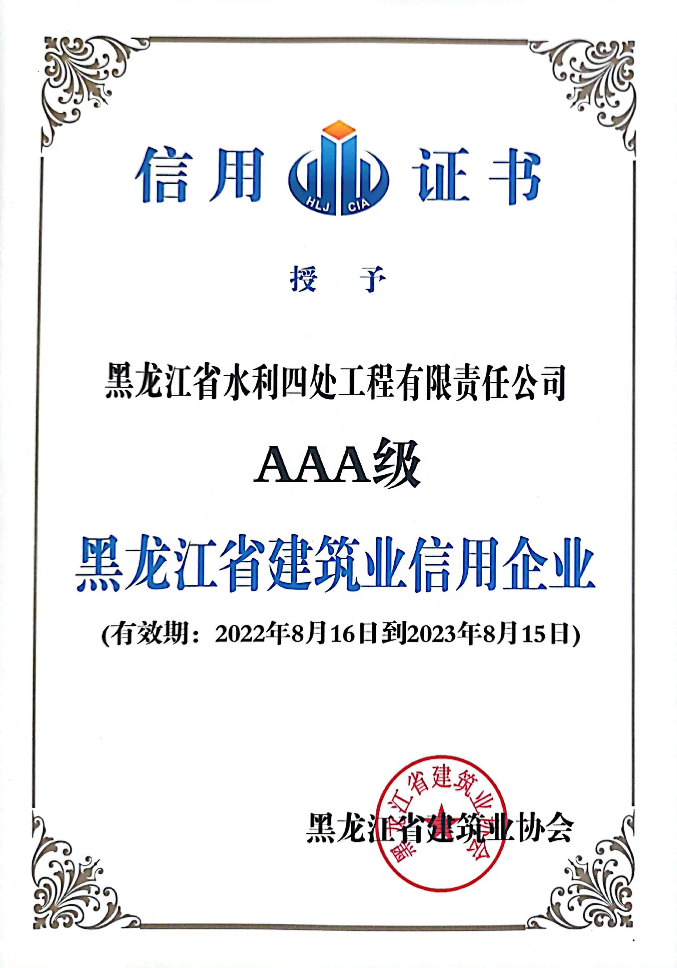 2022年8月,我公司再次被黑龍江省建筑業(yè)協(xié)會評為“黑龍江省建筑業(yè)AAA級信用企業(yè)”。